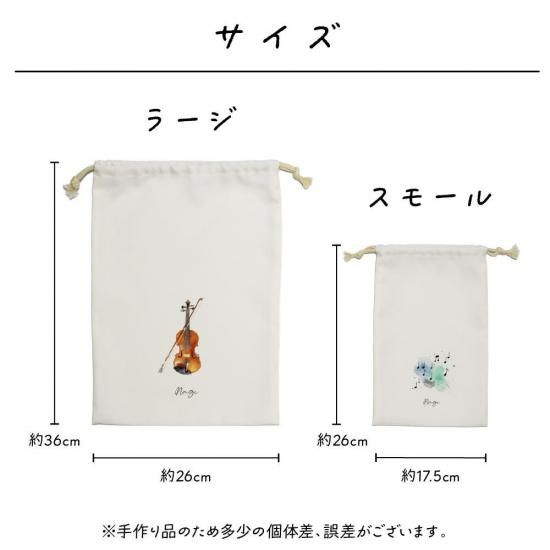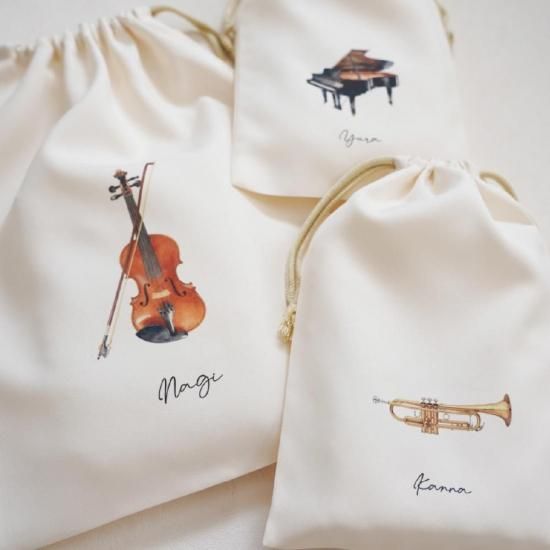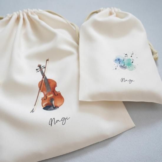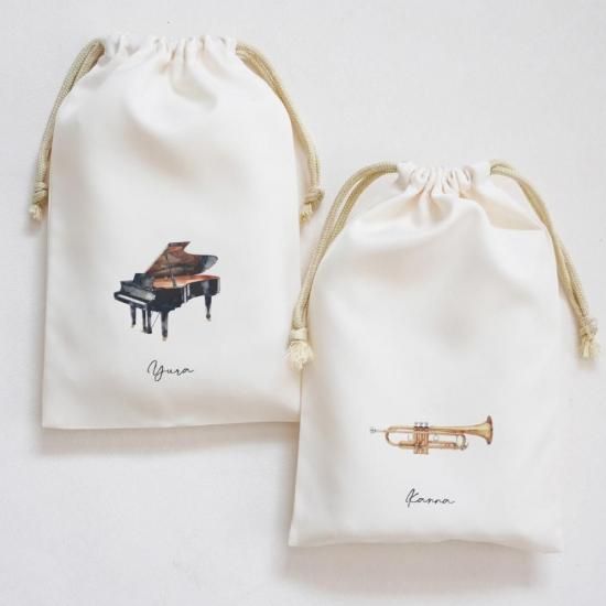 名前入り ポリエステル巾着 ラージ&スモール2枚セット 〔34〕 楽器 | 名入れ 無料 | 当店オリジナル巾着使用 | 吹奏楽 オーケストラ 部活 入園 入学 出産祝い ギフト プレゼント